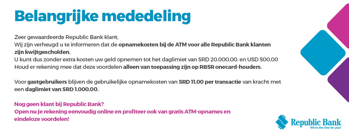 Republic Bank (Suriname) N.V. maakt bankieren makkelijker voor haar klanten met de...